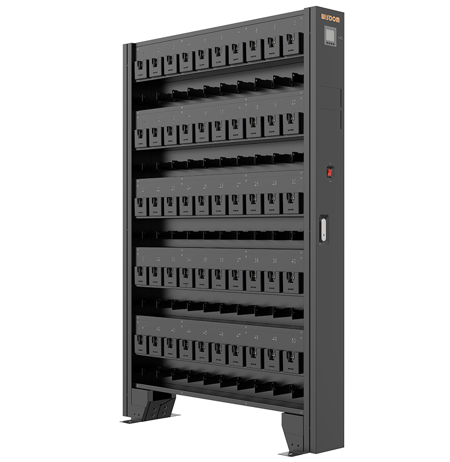 Somos distribuidor oficial de las lámparas mineras y cargadores Wisdom en el Perú. Contamos con estantes de cargadores con doble cara de carga rápida para lámparas inalámbricas.